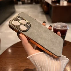 Sheepskin Phone Case For iPhone 11 13 12 14 15 16 Pro Max 15 14 16 Plus Gold Plating Bumper Turn Fur Lambskin Leather Metal Lens Phone Cover