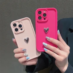 Silver Heart Silicone Soft Phone Case For iPhone 16 15 14 13 12 11 Pro Max XS XR 7 8 Plus SE 2020 Shockproof Candy Matte Cover – 509