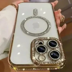 Soft Magnetic Wireless Charge Diamond Phone Case For iPhone 11 12 13 14 15 16 Pro Max Plus Glitter Magsafe Bumper Back Cover – 509