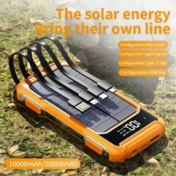 Solar Charger Power Bank Built in 4 Usb Cables Waterproof 20000mah Mobile Solar Power Bank Charger for Huawei P50 IPhone 14 – 509