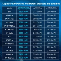 Specifications: Original Battery for iPhone: StellarXcell Ultra Battery Brand New Original BMS: Incorporates 100% Original Brand New BMS flex Design and Style: Available in BLUE packing with original BMS flex and GREEN packing with OEM BMS flex Performance and Property: Features a 7037 TI Program battery for enhanced performance Typical Adaptive Scenario: Designed for a wide range of iPhone models including 7, 8 Plus, 11, 12 Mini, 13 Pro MAX, X, XS, XR, 14 ProMax, and 12Pro Quality Assurance: Comes with a 100% Original Brand New BMS flex, ensuring superior quality and reliability Features: 7037 Ti Program Battery **Reliable Performance and Durability** The StellarXcell Ultra Battery is a testament to reliability and performance. With its original battery for iPhone design, it is engineered to meet the high standards of the Apple ecosystem. The battery is crafted with a Brand New Original BMS flex, which is a crucial component for maintaining the integrity and longevity of the battery. This feature ensures that your iPhone stays powered up throughout the day, whether you're using it for work, communication, or entertainment. **Compatibility and Convenience** The StellarXcell Ultra Battery is not just about performance; it's also about convenience. The battery is designed to be compatible with a wide range of iPhone models, including the latest 16 ProMax This means that you can easily replace your old battery with a new one, ensuring that your device remains up-to-date and functional. The battery's design and style come in two options: BLUE packing with original BMS flex , catering to your preference in aesthetics while ensuring the same high-quality performance. **Quality Assurance and Customer Satisfaction** Understanding the importance of quality assurance, the StellarXcell Ultra Battery is manufactured with a 100% Original Brand New BMS flex, which outperforms OEM BMS flex, Original Pulled + TI Gas gauge, Copy BMS flex + Copy Gas gauge, and Copy BMS flex without Gas gauge. This commitment to quality is evident in the battery's performance and reliability. We invite battery wholesalers and repair shops to visit our factory to experience firsthand the rigorous manufacturing process that goes into each StellarXcell Ultra Battery. With EU stocks readily available, we ensure a quick and hassle-free replacement for your iPhone battery.