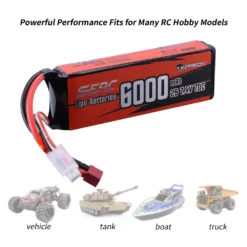 SUNPADOW 2S Lipo Battery 7.4V 6000mAh 70C Soft Pack with Deans T Plug for RC Car Boat Airplane Truck Tank Vehicle Truggy Buggy