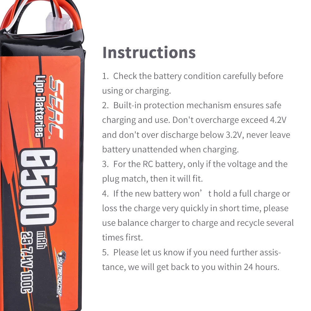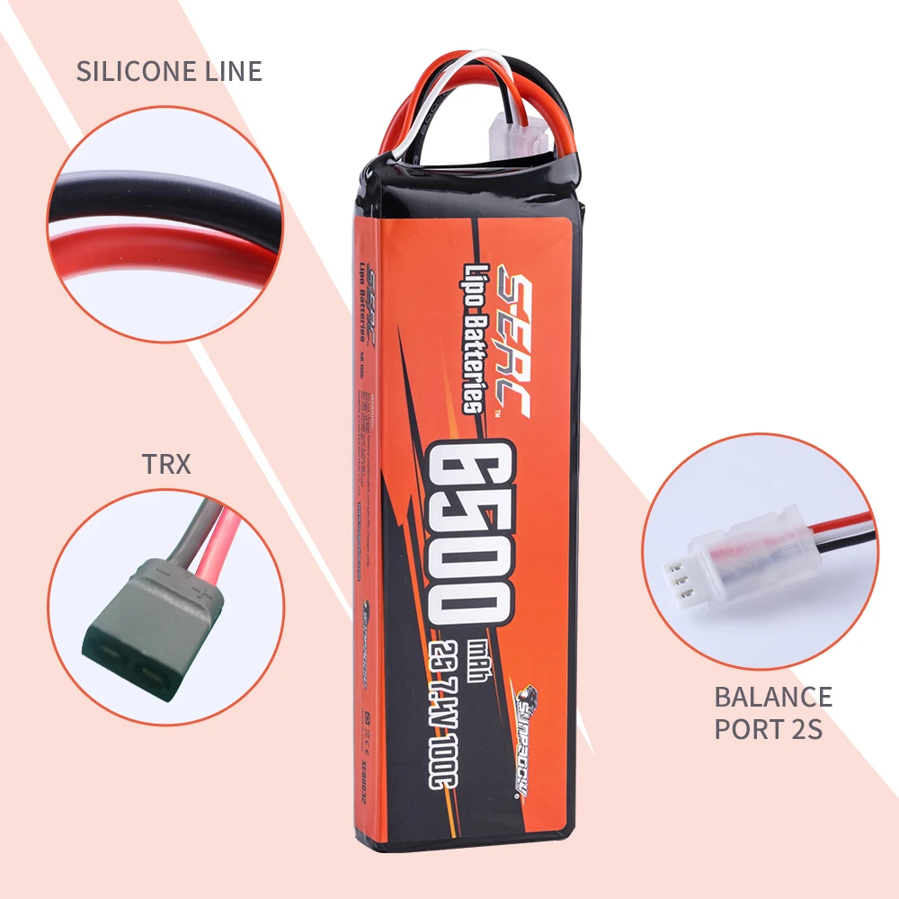 2.Model: 6500mAh-2S1P-7.4V-100C-TRX plug