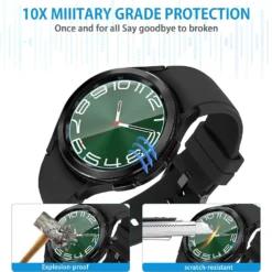 Well protects my watch galaxy watch 6 classic 43mm. A little hot to put down but once put it’s niquel