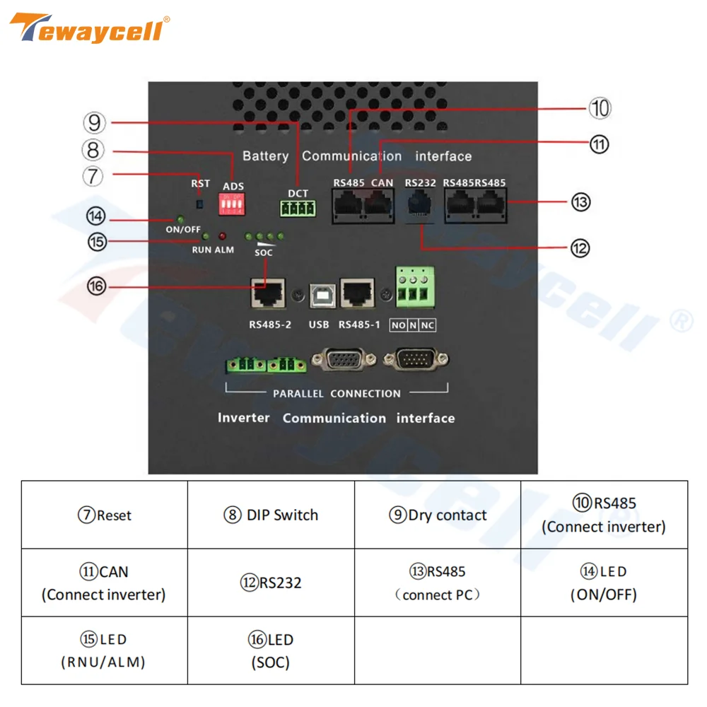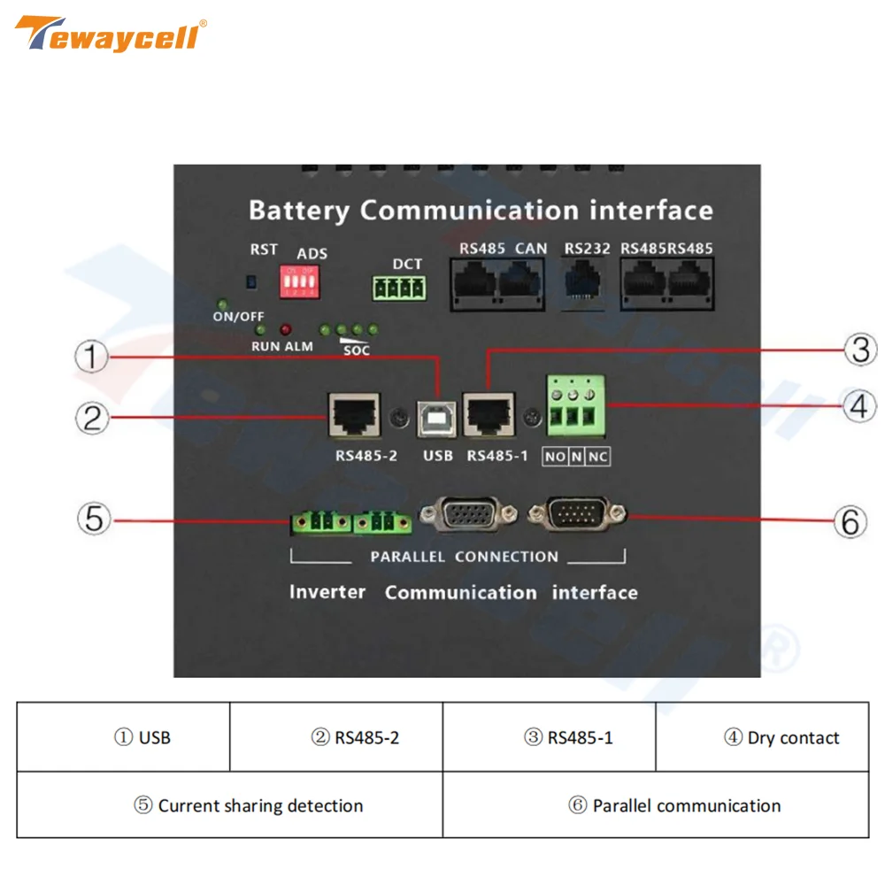 Tewaycell 48V 300AH LiFePO4 Battery Pack 15KWh Powerwall 6000 Cycles Lithium Iron Phosphate Buitl-in BMS 300A CAN RS485 Monitor
