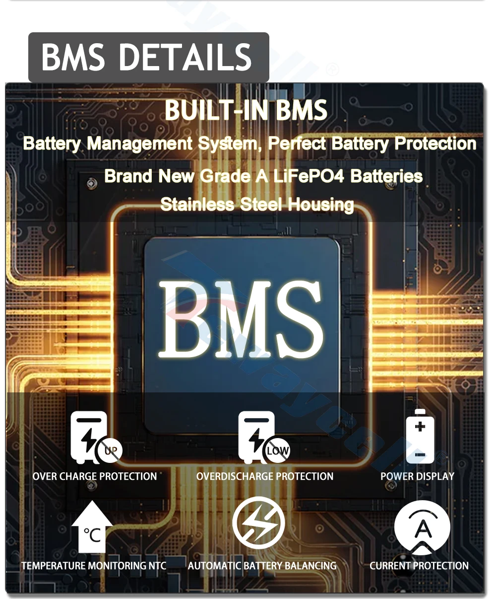 The battery is equipped with an aerosol fire extinguishing device. When the battery experiences a short circuit and catches fire, the fire extinguishing device can detect the temperature and automatically extinguish the fire.