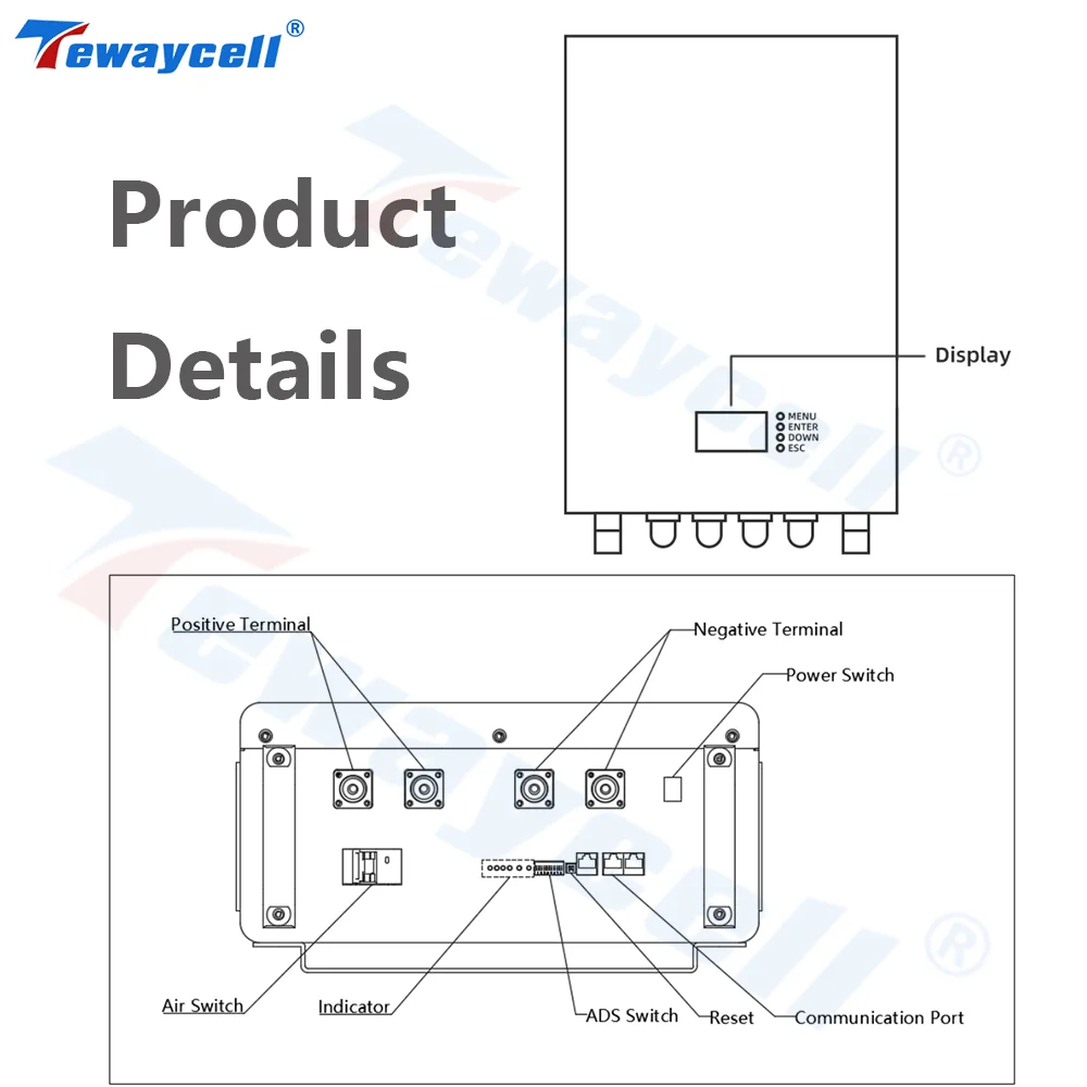 Tewaycell 48V 300AH LiFePO4 Battery Pack 15KWh Powerwall 6000 Cycles Lithium Iron Phosphate Buitl-in BMS 300A CAN RS485 Monitor