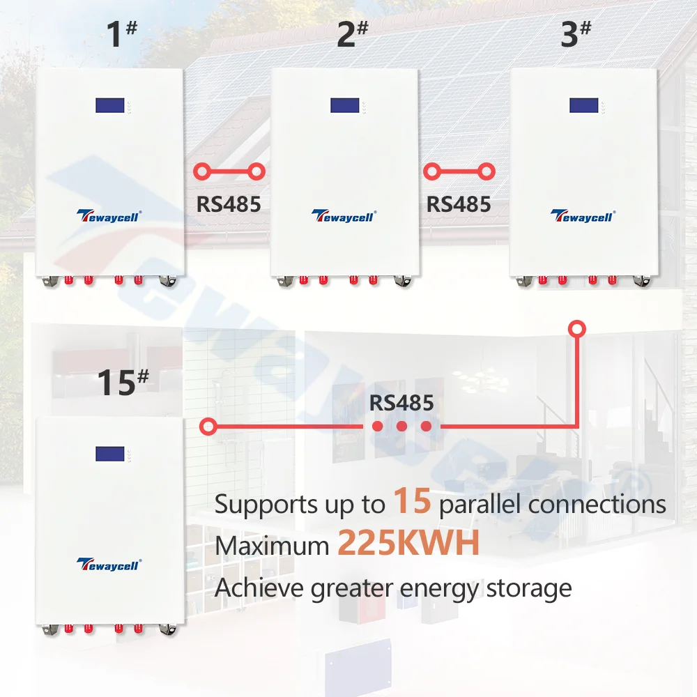 Tewaycell 300AH 15KWh 48/51V LiFePO4 Battery Pack Buitl-in BMS Powerwall 6000Cycles Lithium iron Phosphate Solar ESS DDP TAXFREE