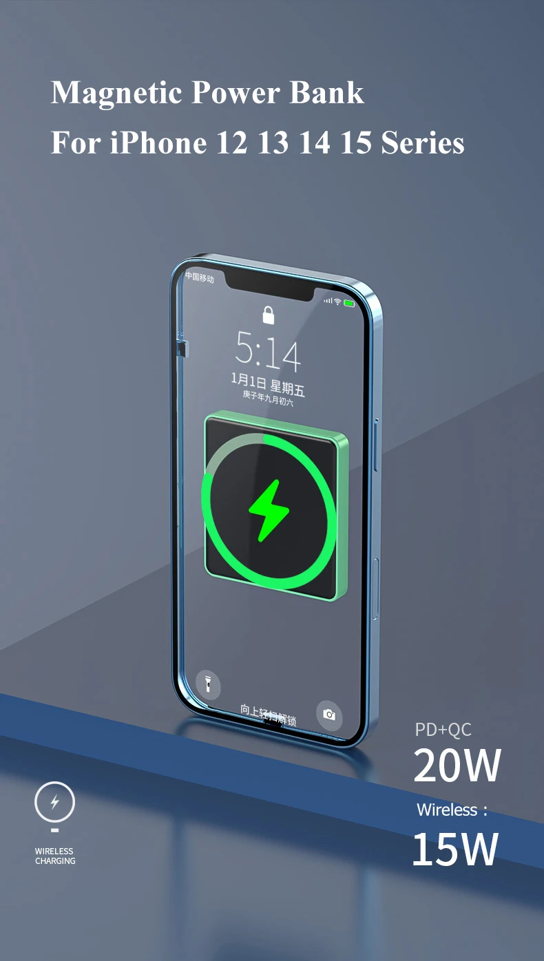 Thin Wireless Power Bank Magnetic 20W 5000mAh Portable Fast Charging External Battery for Magsafe For iPhone 15 14 13 12 pro max