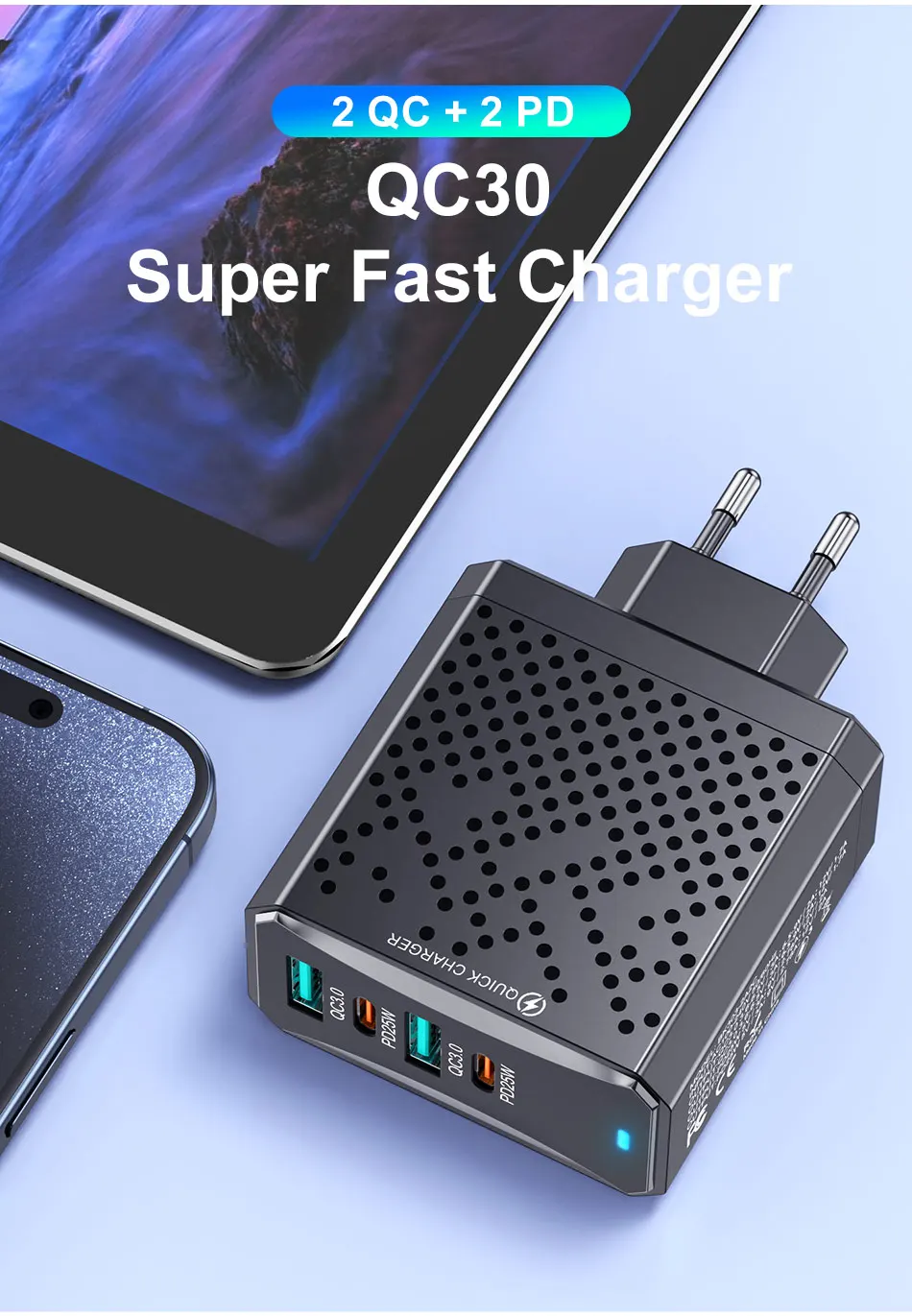 Total 100W 4 Port USB QC3.0 AU Plug UK Plug PD Charger Type C USB Mobile Phones Charger Adapter For iPhone Samsung Huawei Xiaomi – 509