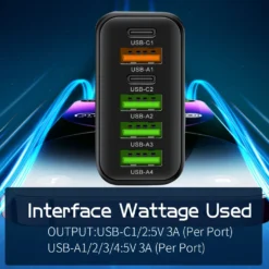 3.Six-hole charging 2 USB C+4 USB A, the maximum power of the three-port charging can reach 65W !