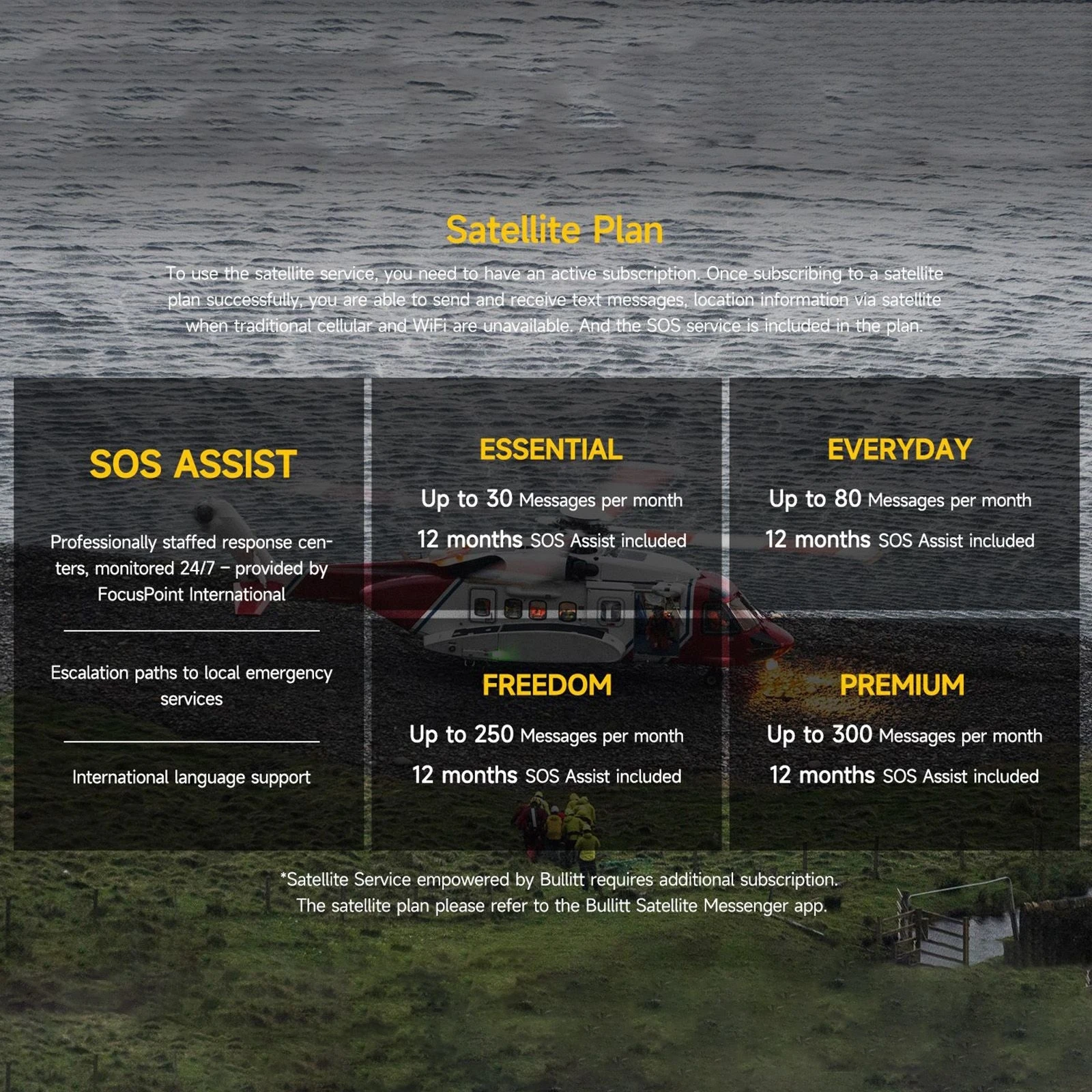 5. Satellite Coverage: Albania, Andorra, Austria, Belarus, Belgium, Bosnia and Herzegovina, Bulgaria, Channel Island, Croatia, Cyprus, Czech Republic, Denmark, Estonia, Finland, France, Germany, Gibraltar, Greece, Holy See, Hungary, Ireland, Isle of Man, Italy, Latvia, Liechtenstein, Lithuania, Luxembourg, Malta, Moldova, Monaco, Montenegro, Netherlands, North, Macedonia, Norway, Poland, Portugal, Romania, San Marino, Serbia, Slovakia, Slovenia, Spain, Sweden, Switzerland, United Kingdom, Canada, United States (Please check https://bullitt.com/coverage/ for coverage maps)