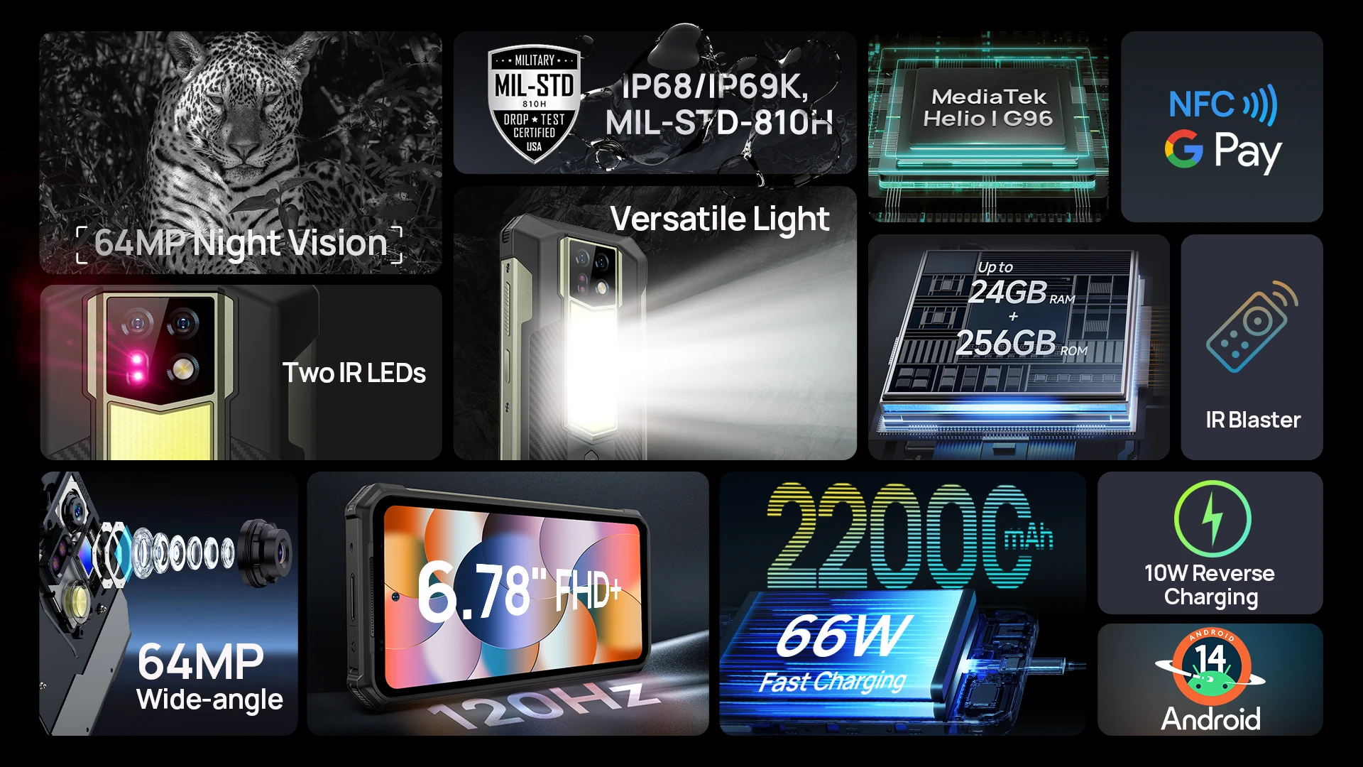 Visuals penetrate darkness through powerful IR sensor. The night vision lens has an industry-leading mega pixels 64MP, along with advanced Ulefone NightElf Ultra 2.0 algorithm and less interference. In low light or totally dark environment, you are still able to capture very clear and detailed images, bringing you into great scenes of night shooting, wildlife observation, and helping a lot in field rescue and pinhole camera detection.