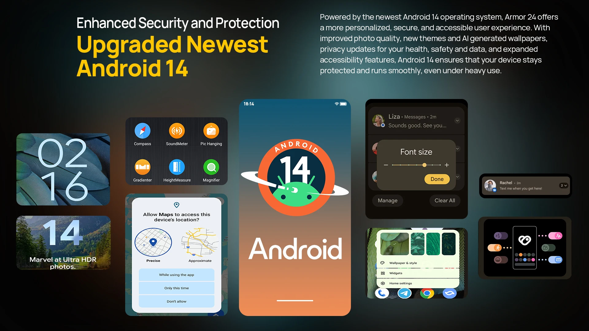 With up to 24GB of RAM, together with 256GB of internal storage, Armor 24 provides the flexibility, convenience, and performance necessary to handle intensive multitasking, store media files, play games fluidly and ensure a smooth user experience.