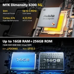 MediaTek Dimensity 6300 ,2.4GHz ,8, 2 x Arm Cortex-A76, 6 x Arm Cortex-A55