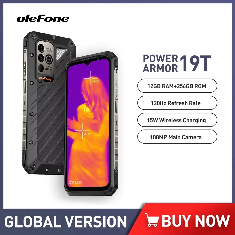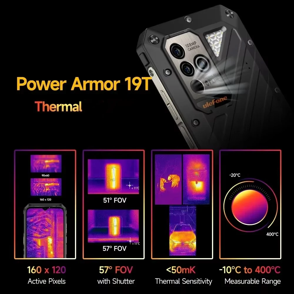 Ulefone Power Armor 19T Global Version Rugged Phone Thermal Imaging Camera 17GB RAM +256GB ROM Helio G99 66W Mobile Phones