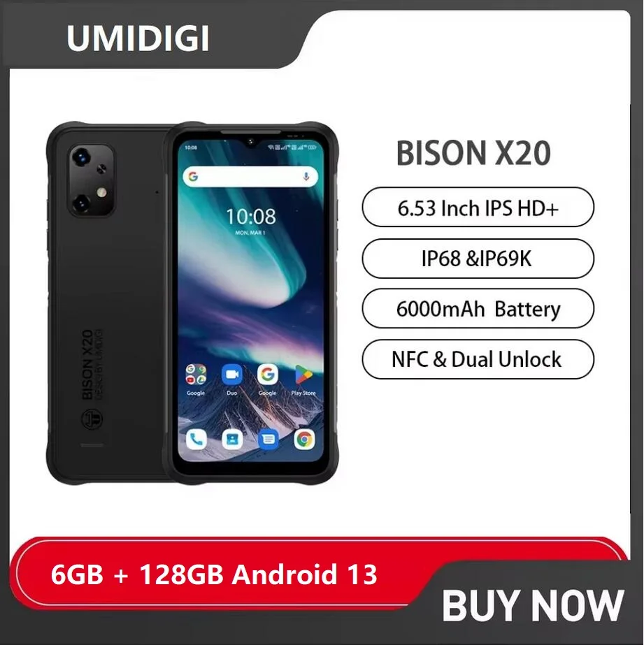 UMIDIGI BISON X20 Rugged 4G Smartphones 6.53Inch HD+ MTK Helio P60 Octa Core 6GB+128GB Android 13 Mobile Phone 20MP celular