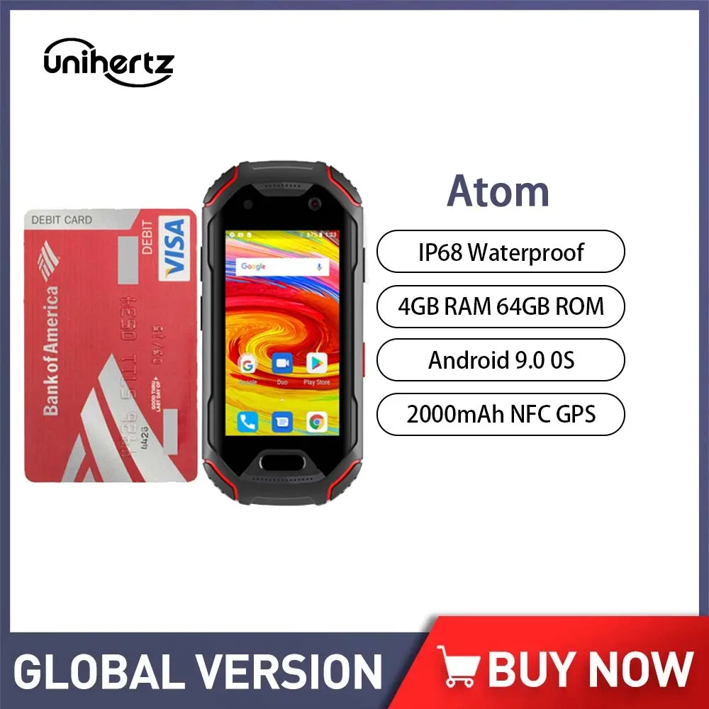 Unihertz Atom 4G Rugged Smartphone Android 9 Octa Core Cellphones 4GB RAM 64GB ROM 2.45 inch unlocked Mobile Phone 2000mAh NFC