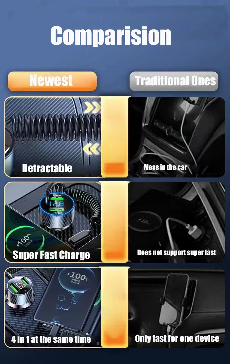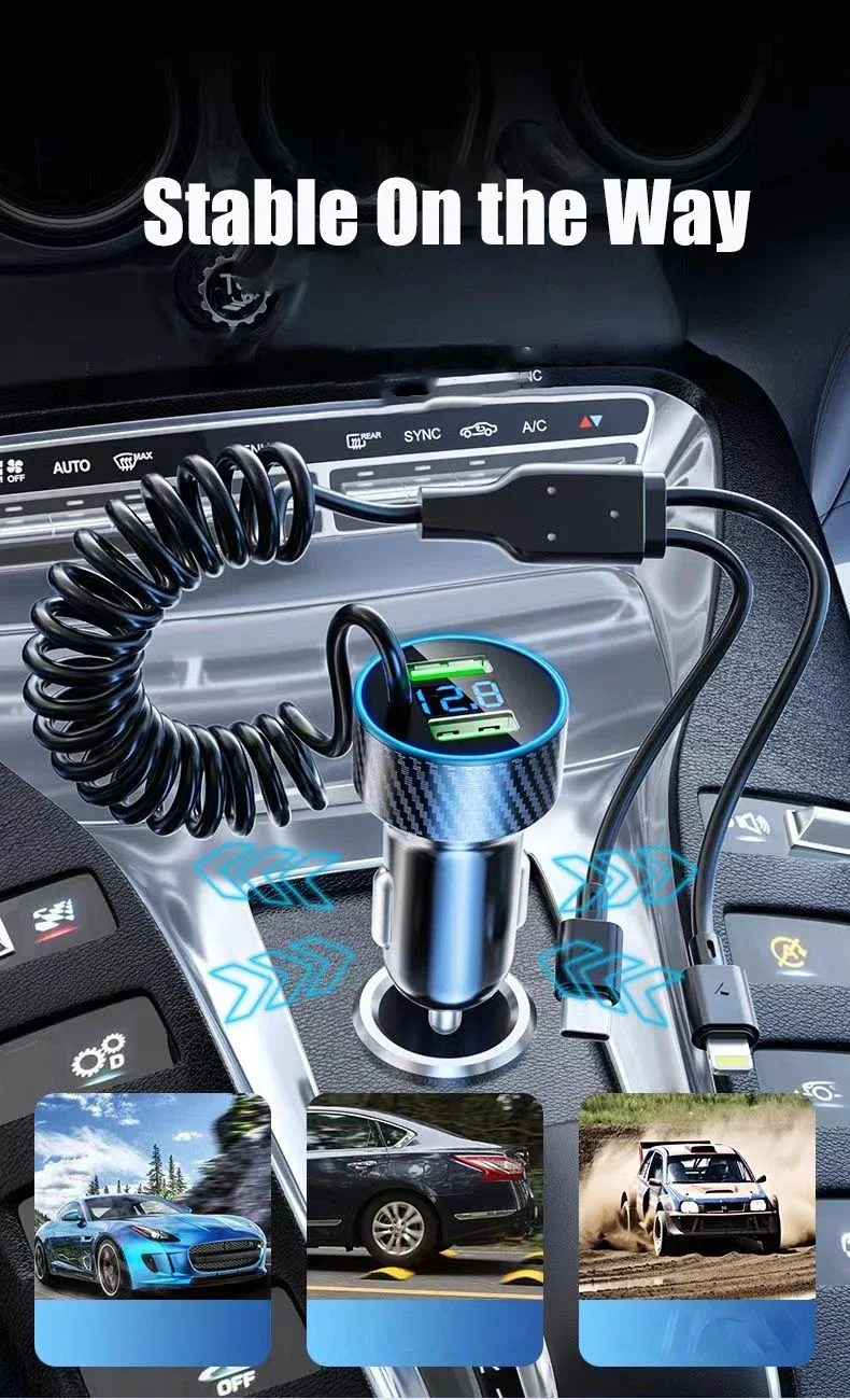 Buy USB Car Phone Charger Adapter with Retractable Cable LED Voltage Monitor 4 in 1 Super Fast Charge for iPhone Samsung Huawei at for . Find more , and products. Enjoy ✓Free Shipping Worldwide! ✓Limited Time Sale ✓Easy Return.