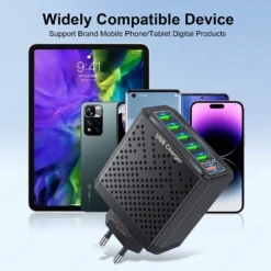Uslion 6 in 1 USB charger qc3.0 fast charging quick charger for Samsung S23 S22 Xiaomi mobile phone charge adapter EU/KR/US/UK plug