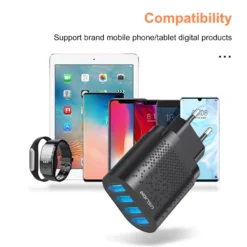 USLION EU/US/AU/KR/UK Plug USB Charger 3A QC3.0 Mobile Phone Charger For iPhone 14 Samsung Xiaomi 4 Port 48W Fast Wall Chargers – 509