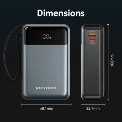 1) 65W power bank comes with a built-in 0.82ft(0.25m) USB-C cable. Pull the USB-C cable to adjust the length of the cable, then pull it again to retract and store it. Say goodbye to tangled cables
