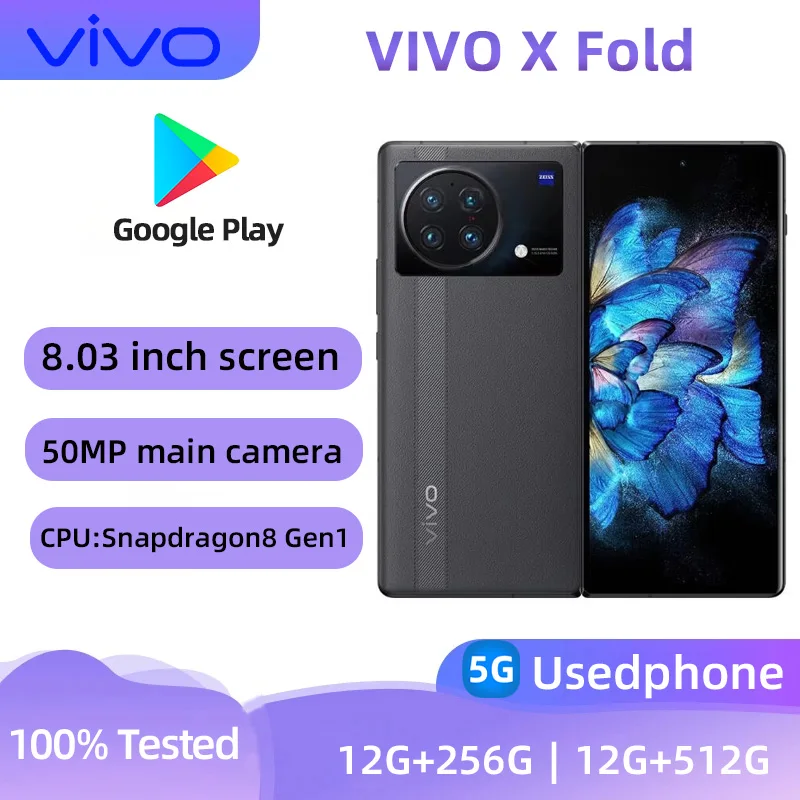 VIVO X Fold 5g SmartPhone CPU Qualcomm Snapdragon8 Gen1 Screen 8.03-Inches 4600mAh 50MP Cameras Android Used Phone