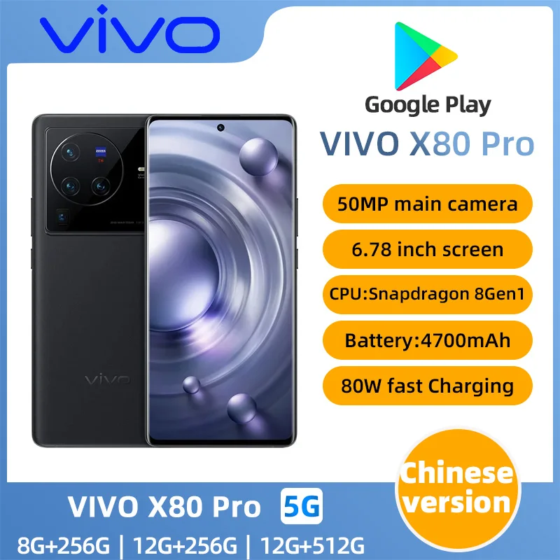 VIVO X80 Pro 5g SmartPhone Snapdragon 8 Gen 1 6.78inch QHD 4700Mah 80W 50W Wireless Charge NFC 50MP Original used phone