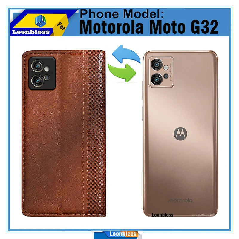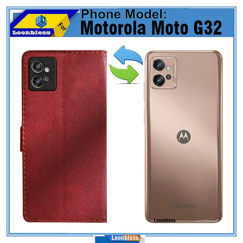 Wallet Flip Case For Motorola G32 Phone Case Etui Motorola Moto G32 global version Moto G 32 MotoG32 Cover Leather Phone housing premium Fundas accessories Coque bags Pouch Capa have card slots with holder Leather & Silicone bumper original Shockproof magnet Phone Covers