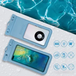 This transparent sealed pouch ensures your phone stays dry during outdoor activities like swimming, rafting, and diving.