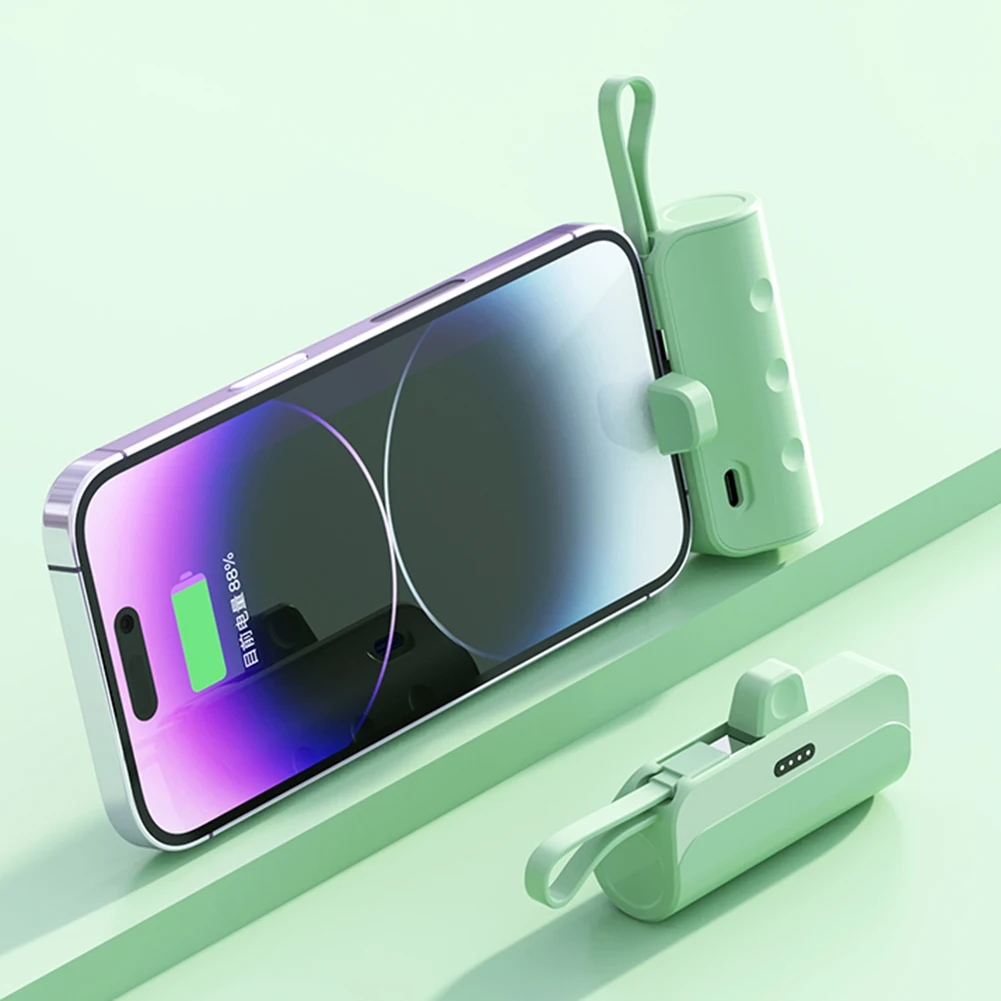 Specification: Color: pink, white, black, green (optional) Interface: Type-C, for iPhone (optional) Capacity: 5000mAh Shell material: plastic Charging power: 10W Cell type: polymer lithium ion cell Product size: about 79x33.5x27mm/3.11x1.31x1.06inch Package size: about 140x83x30mm/5.51x3.26x1.18inch Net weight: 100g Note: Due to the different monitor and light effect, the actual color of the item might be slightly different from the color showed on the pictures. Thank you! Please allow 1-2cm measuring deviation due to manual measurement. Wireless Capsule Charger 5000mAh Large Capacity External Battery Pack Portable Charger Plug and Play Convenient for Home Travel Feature: 1. Plug and Play: Lipstick size, plug and play, no longer need to worry about the clutter of charging cables, charging phone anytime anywhere, which is very convenient. 2. Convenient: Safe and fast charging, playing with mobile phones while charging. Two devices can be charged at the same time. 3. 2-in-1 Charging Cable: The two-in-one charging line is both a charging line and a lanyard. Power bank has compact mini size and large battery capacity, easy to carry. 4. Portable: Whether at home or out, the compact and portable design, sufficient power, easy to use for various charging scenarios. 5. Satisfaction Guarantee: We strive to provide each customer with the highest standard of customer service to ensure you have a pleasant shopping experience. If you have any issues, inquiries or need assistance, please feel free to contact us directly. 1 x Mobile Power Bank