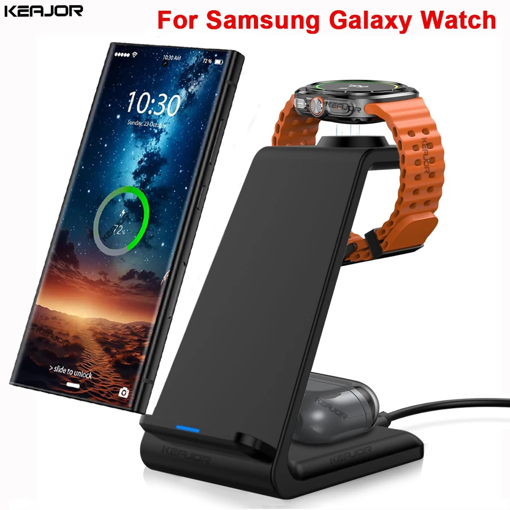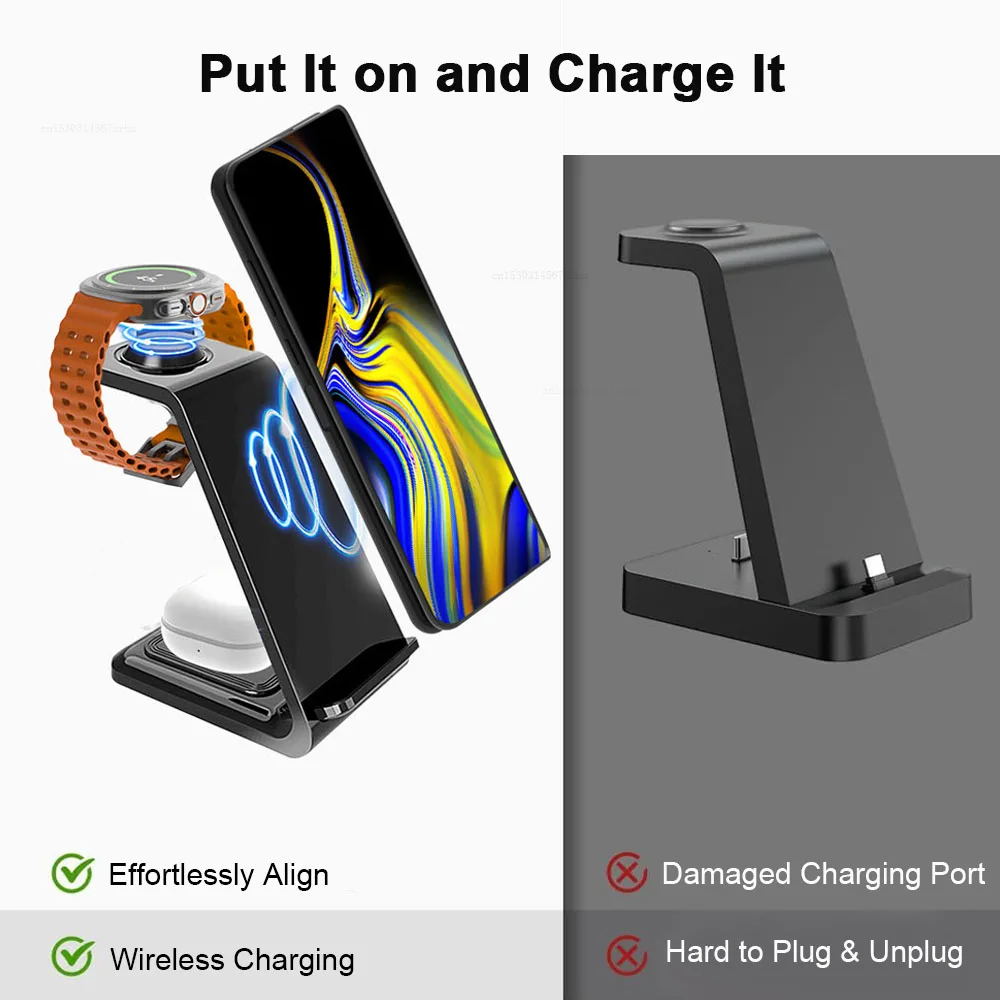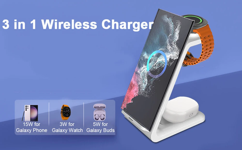 Works flawlessly! No issues at all. Super simple, literally unbox, plug in and you’re done. Charges S23 Ultra, Galaxy Watch 4 and Buds+ without issue. Does not run hot or overheat any devices. Takes up a small footprint of space and is overall nice looking on a nightstand. Very pleased!