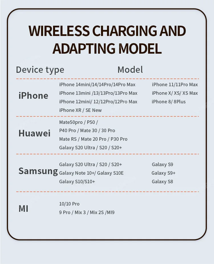 Output : 5W/7.5W/10W/15W(15W Max will be charging faster than others)