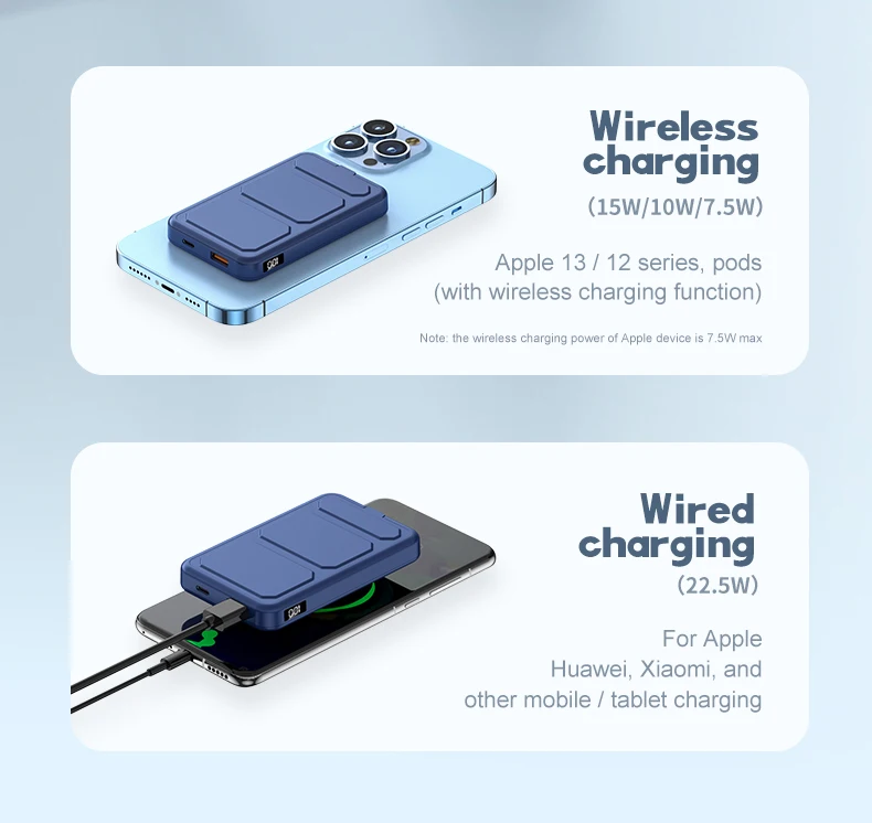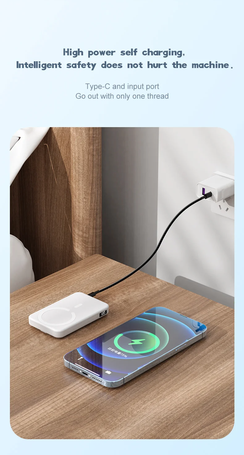 Ultra-thin Magnetic Power Bank 10000mAh 5000mAh Portable Wireless Fast Charger PD20W External Spare Battery For iPhone Xiaomi