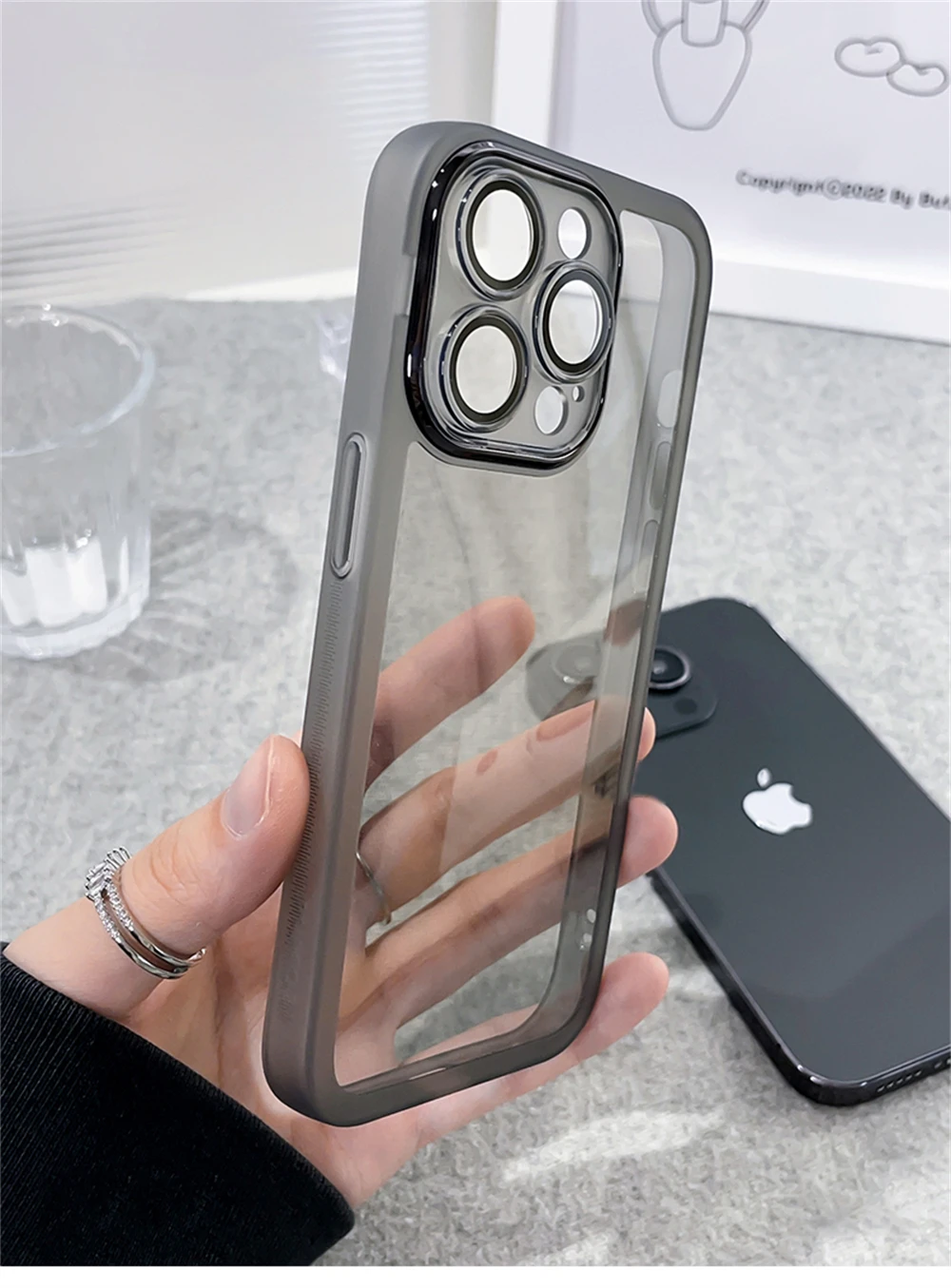 With Lens Protection Anti-slip Transparent Case For iPhone 16 15 14 13 12 11 Pro Max X XS XR Anti-slip Soft Silicone Clear Cover – 509