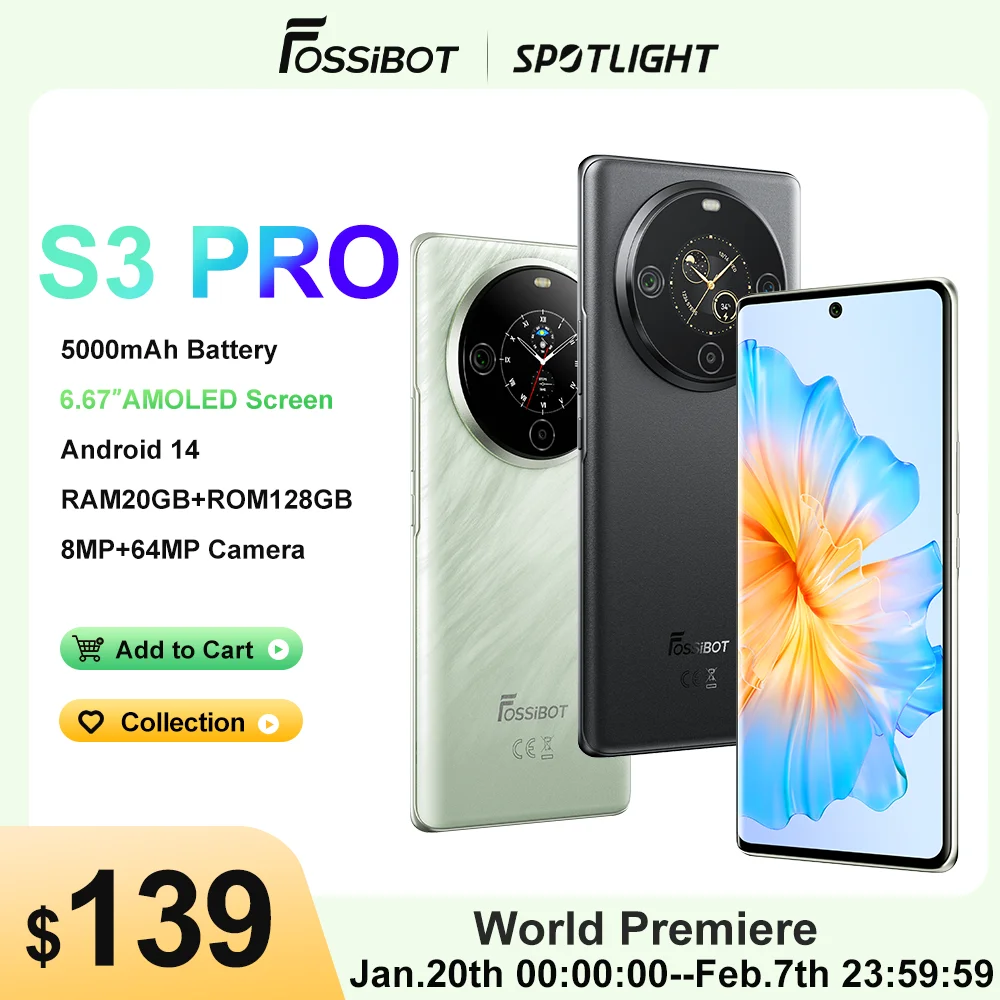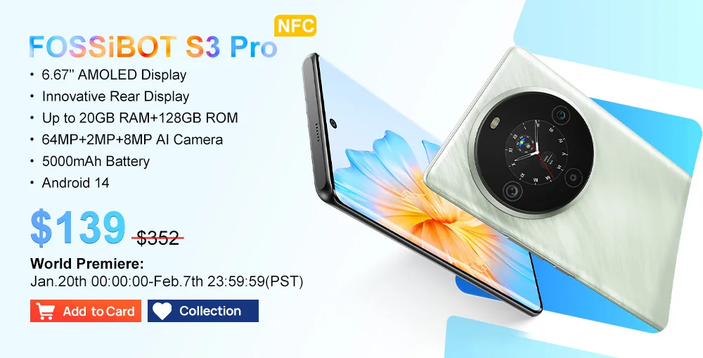 [World Premiere] FOSSiBOT S3 PRO Smartphone 6.67″ AMOLED Display Android 14 Up to 20+128GB Mobile 8+64MP CAM NFC Cell Phone