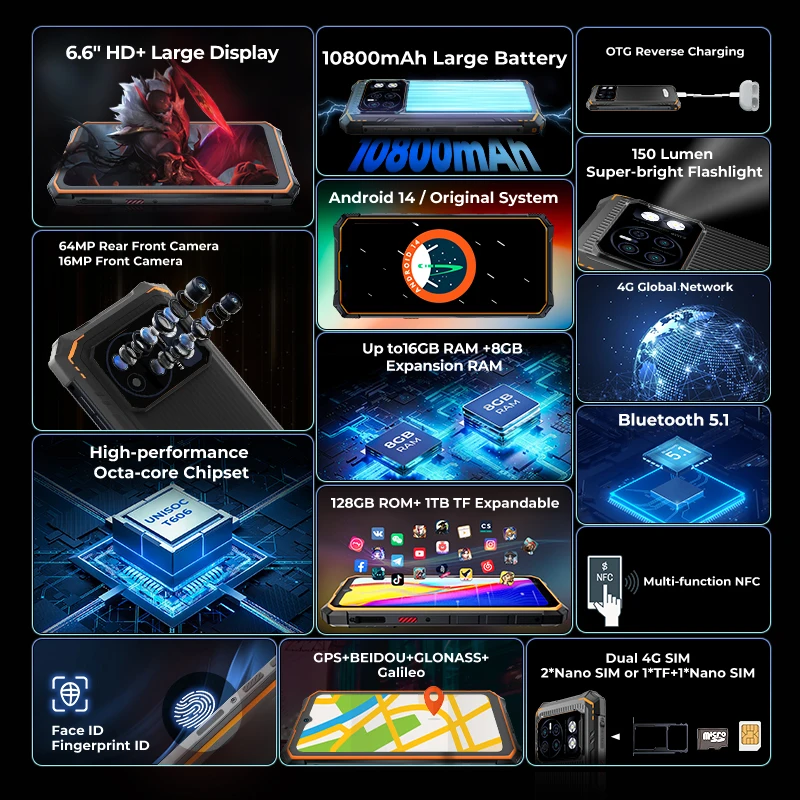 Stay connected with the HOTWAV Cyber 13, featuring dual-band 2.4 GHz and 5 GHz Wi-Fi, plus Bluetooth 5.1. Enjoy faster, more stable internet and seamless wireless connections for all your devices, whether you’re streaming, gaming, or sharing files.