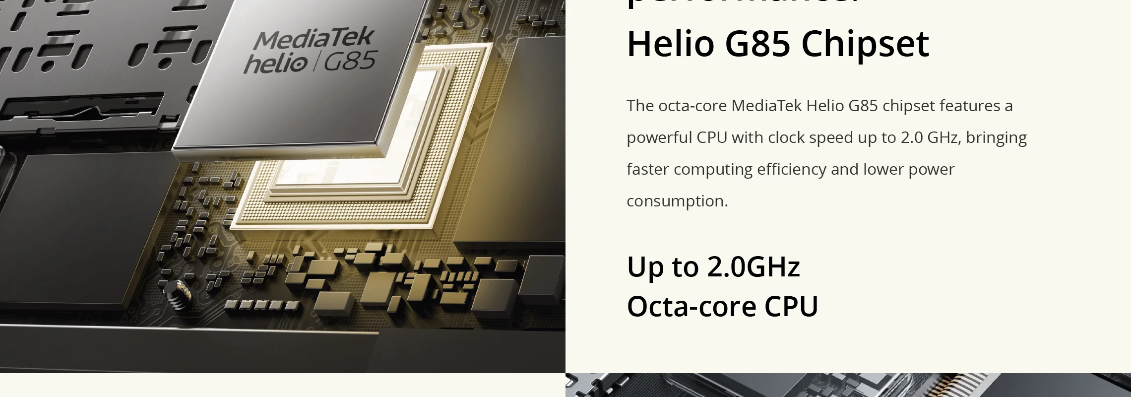 CPU ————- Powerful Helio G85 Octa-core Processor