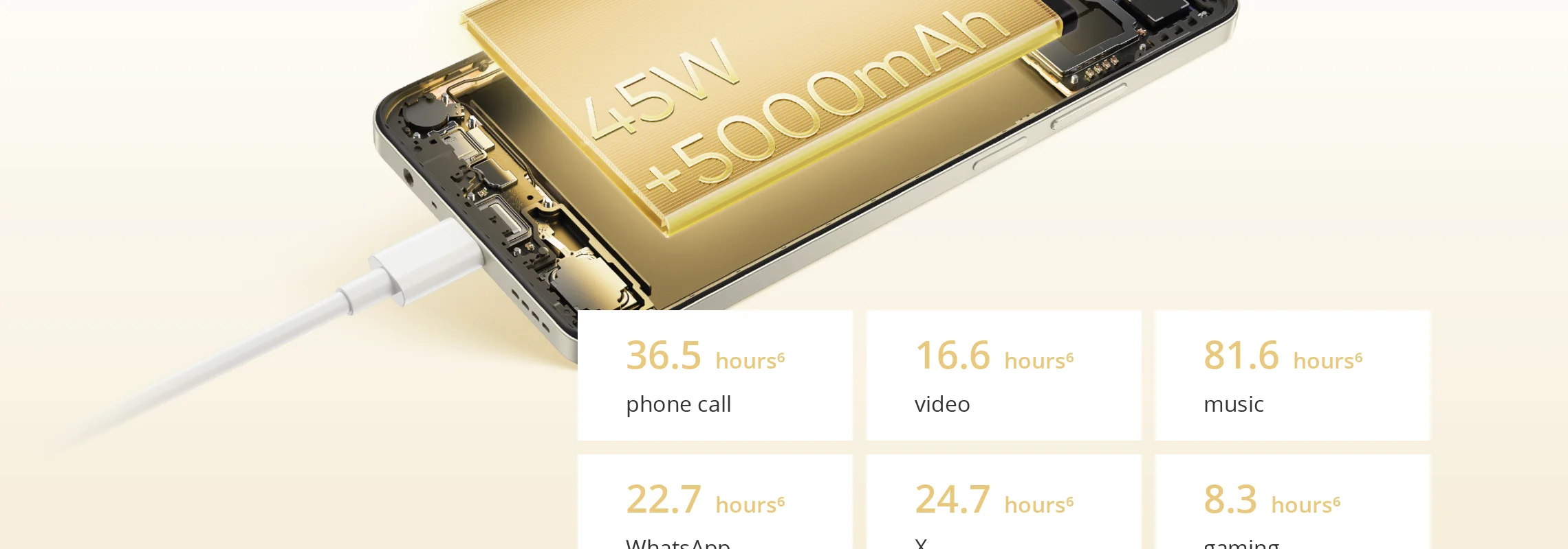 Battery ———45W SUPERVOOC Charge,5000mAh Mega Battery