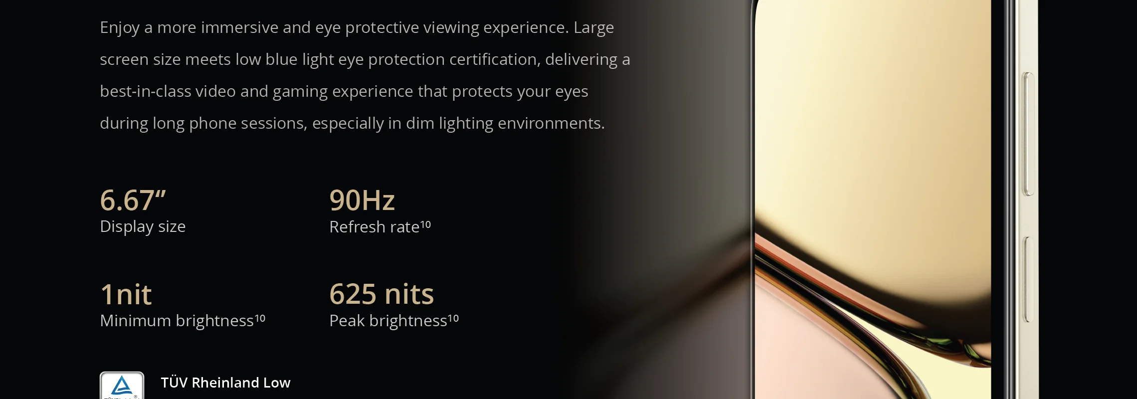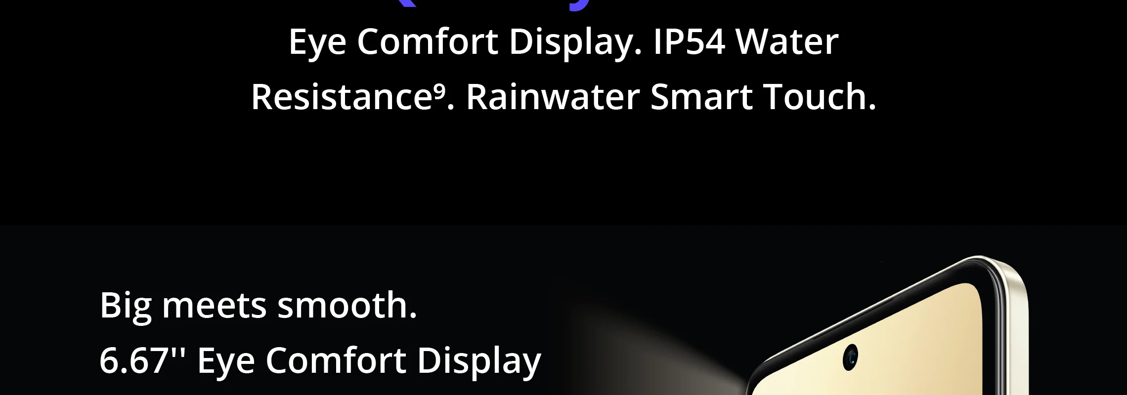Screen ———- 6.67” 90Hz Eye Comfort Display,1604*720 HD +