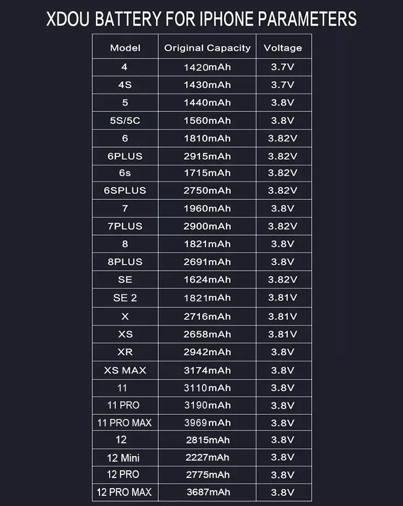 Buy XDOU Battery For iPhone 5S SE 2 6 6S 7 8 Plus X XR XS 11 12 13 Pro Max Replacement Bateria IP6S 6G 7G 7Plus 8Plus 4 5 4S at for . Find more , and products. Enjoy ✓Free Shipping Worldwide! ✓Limited Time Sale ✓Easy Return.