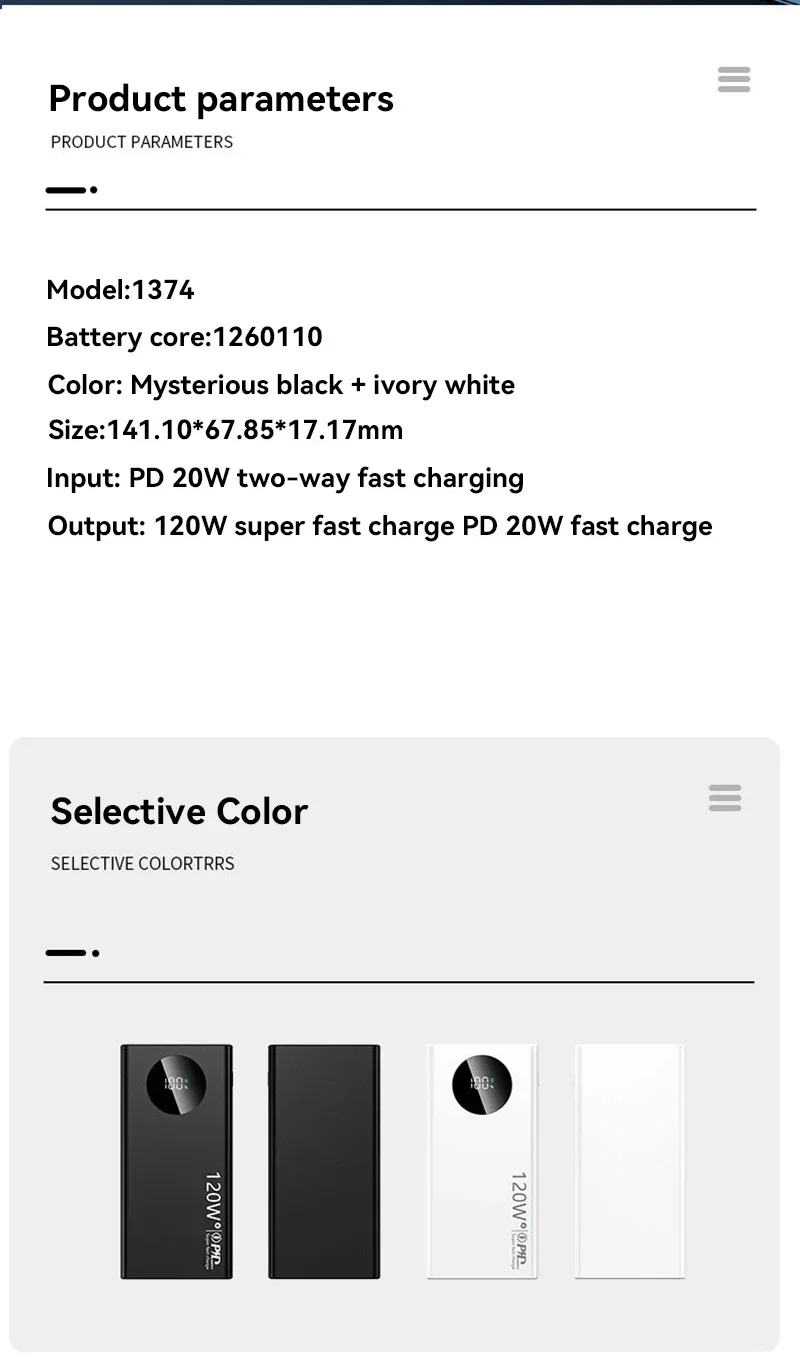 Xiaomi 120W 50000mAh High Capacity Power Bank Fast Charging Powerbank Portable Battery Charger For iPhone Samsung Huawei 2024 Specification: Product: 120W super fast charging power bank with built-in power cord Capacity: 10000mAh/30000mAh/50000mAh Size: about 141*68*17mm Color: black, white Features: 120W super fast charging, dual USB fast output Mobile phone fast charging protocol, quickly charge the battery PD 20W fast charging reduces unnecessary waiting time Charge three stations at the same time to share the joy of charging Multi-protocol compatible, multi-device support, including PD, QC, AFC, FCP, SCP and other fast charging protocols LED crystal display, control the power at any time Type-c output + PD20W input, impeccable Sampling high-quality lithium battery cells, ultra-high conversion rate, stable discharge voltage, safe daily charging Classic two-color, versatile Notes: There is a protective film on the screen to protect it from scratches during use. Please tear it off before use, thank you.