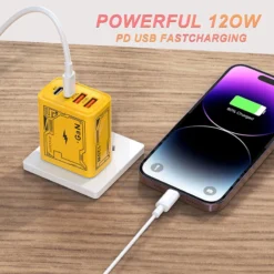 Specifications: Material: PC+ABS fireproof and flame-retardant material Color: Bright Yellow Category: Mobile Phone Chargers Design and Style: Mech Style Performance: 120W Fast Charging Compatibility: Universal compatibility with Xiaomi, iPhone, Huawei, Samsung devices Features: Pd Usb 4 Ports Charger **Efficient Power Delivery** The Xiaomi 120W Fast Charger is a powerful and versatile charging solution designed to cater to the fast-paced lifestyle of modern users. With its PD USB 4 Ports feature, this charger ensures that you can charge up to four devices simultaneously, making it an indispensable accessory for families or individuals with multiple gadgets. The intelligent chip within the charger automatically detects the optimal charging current for each device, ensuring a fast and efficient charging process without overcharging or damaging the battery. Whether you're at home, in the office, or on the go, this charger's compact size and lightweight design make it a convenient travel companion. **Universal Compatibility and Safety** The Mech Style Mobile Phone Charger's universal compatibility is a testament to its adaptability. It is not just a charger for Xiaomi devices; it is a powerhouse that caters to a wide range of smartphones, including the iPhone, Huawei, and Samsung. The charger's safety features are paramount, as it is constructed from PC+ABS flame-retardant material that meets high safety standards. This charger is designed to prevent overheating and reduce the risk of fire, giving you peace of mind while charging your devices. **Modern Design and Ease of Use** The charger's bright yellow color and modern design make it a stylish addition to any charging station. Its sleek and compact design ensures that it doesn't take up too much space, making it an ideal choice for both home and office environments. The packaging content includes the charger itself, ready to provide reliable and efficient charging solutions for all your devices. Whether you're in need of a quick charge or a full power-up, this charger is your go-to accessory for keeping your devices powered and ready for action.