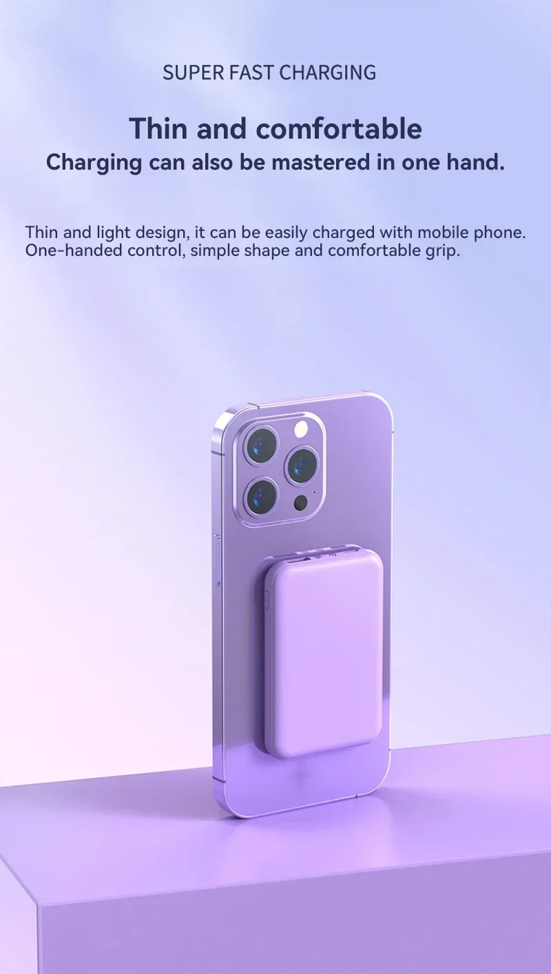 The purple power bank is very beautiful, with fast charging speed, fast logistics, lightweight, and good hand feel. Many models of mobile phones support fast charging