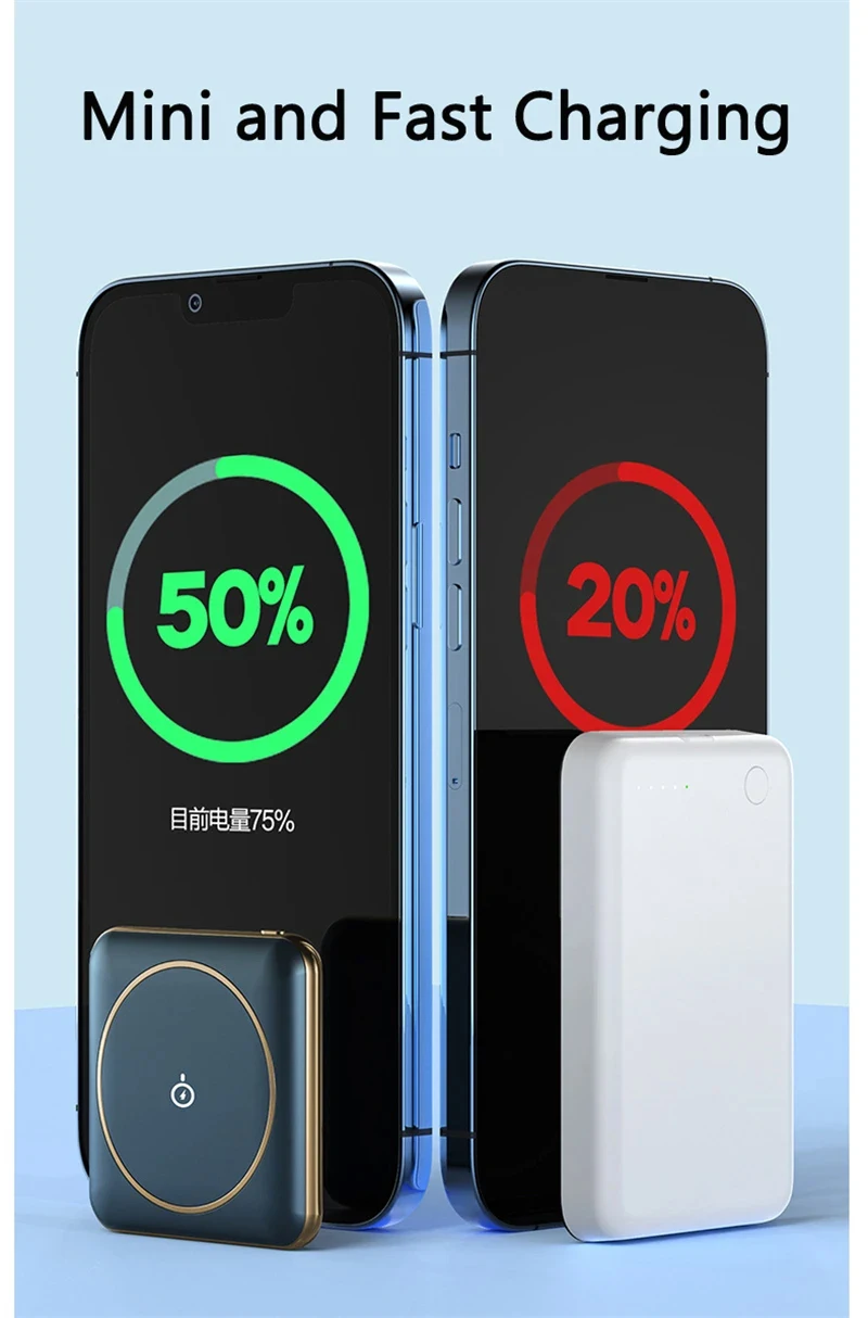 Specifications: Material: ABS+PC Capacity: 50000mAh Wireless Output: 5W Input Parameters: 2.1A Output Port: Wireless, Type-C, Lightning Design: Magnetic, Thin, Compact Features: |Mini Magnetic Wireless Powerbank|For Iphone| **Efficient Power Solution for On-the-Go** The Xiaomi 50000mAh Power Bank is a portable powerhouse designed to keep your devices charged wherever you go. Its slim profile and lightweight design make it easy to carry, while the magnetic wireless feature ensures a secure connection for your devices. With a capacity of 50000mAh, this power bank can charge multiple devices multiple times, making it ideal for long trips or outdoor activities. **Versatile Charging for Every Device** This power bank is not just a powerhouse; it's a versatile charging solution. It comes with three output ports: wireless, Type-C, and Lightning, ensuring compatibility with a wide range of devices including iPhone, Huawei, and Samsung. The intelligent charging protection system safeguards your devices against overcharging, while the magnetic adsorption feature keeps your devices securely attached during charging. **Designed for Convenience and Safety** The Xiaomi 50000mAh Power Bank is not just about power; it's about convenience and safety. The magnetic wireless feature allows for a hassle-free charging experience, while the four available colors - black, white, blue, and green - cater to your personal style. The power bank meets the aviation carry-on standard, making it a reliable travel companion. The high-density batteries within the ultra-compact body ensure that this power bank is as efficient as it is portable.