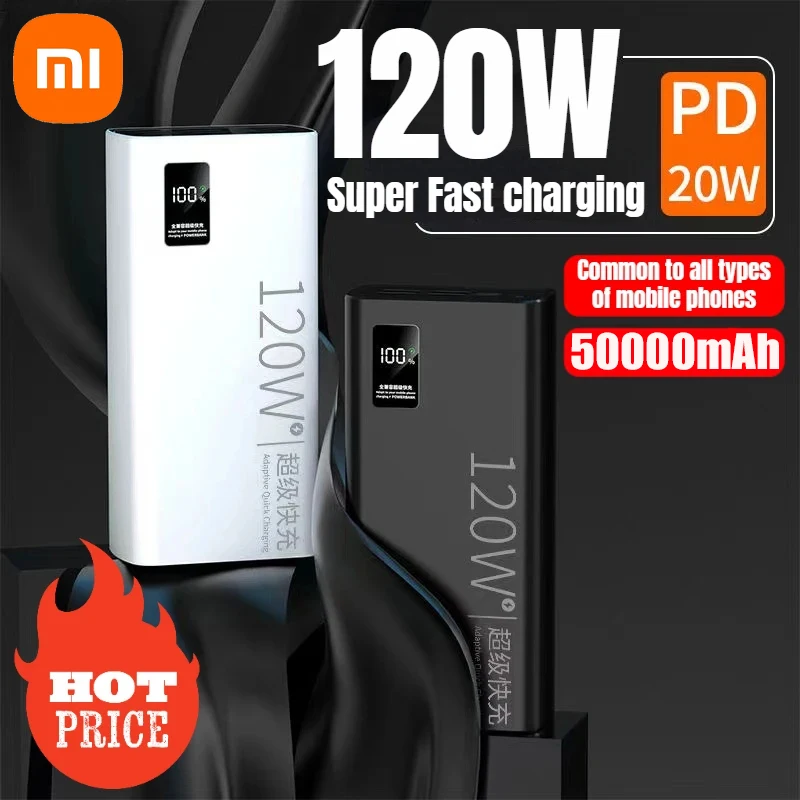 Specifications: Material: ABS+PC Capacity: 50000mAh Charging: 120w Super Fast Charging Compatibility: Suitable for various mobile phones Design: Sleek and portable with LED Digital Display Accessories: Includes 1 x Power Bank and 1 x Charger Cable Features: Efficient Power Delivery The Xiaomi 50000mAh Power Bank is a testament to the brand's commitment to innovation and performance. This portable battery charger is designed to deliver a rapid and reliable power solution for your on-the-go lifestyle. With its 120w Super Fast Charging capability, you can charge your devices swiftly, ensuring that you never run out of power when you need it most. Whether you're an iPhone, Xiaomi, Huawei, or Samsung user, this power bank is engineered to cater to a wide range of mobile devices, making it a versatile companion for all your charging needs. Sleek Design and User-Friendly Features The power bank's design is as impressive as its performance. The ABS+PC material offers durability and a premium feel, while the LED Digital Display keeps you informed of the remaining power capacity. The compact size of 98*64*15mm makes it easily portable, fitting seamlessly into your bag or pocket. The inclusion of a charger cable in the packing ensures that you have everything you need to start charging right out of the box. This power bank is not just a device; it's a statement of style and convenience. Adaptable and Reliable The Xiaomi 50000mAh Power Bank is not just a power source; it's a reliable partner for all your charging needs. With a capacity of 50000mAh, it can charge multiple devices multiple times, making it ideal for long travels, outdoor adventures, or simply as a backup for daily use. The power bank's support for PD120W and Type C Input and Output ensures that it can keep up with the latest charging standards, offering you the best in power efficiency and compatibility. This power bank is not just a product; it's a promise of reliability and convenience.