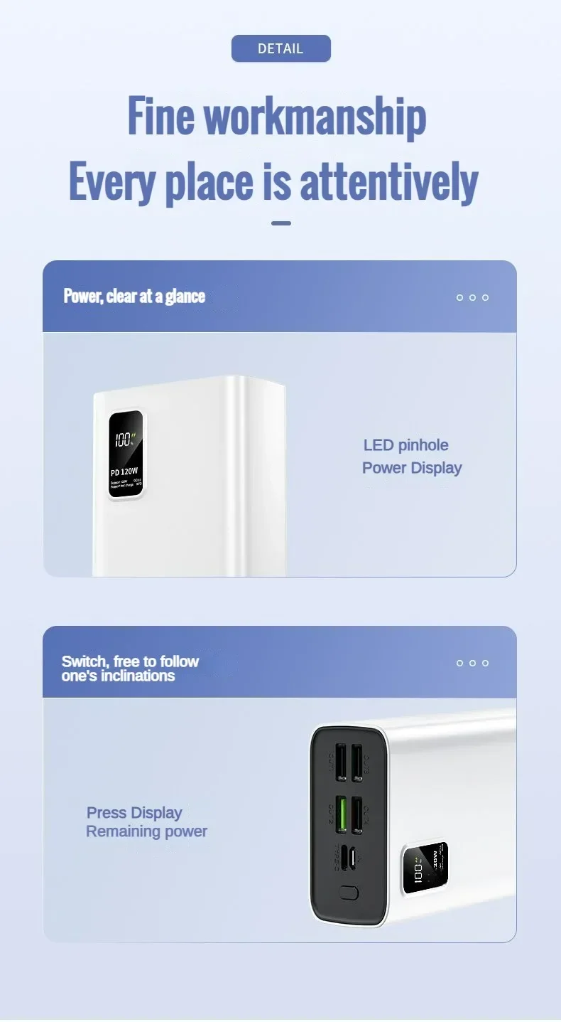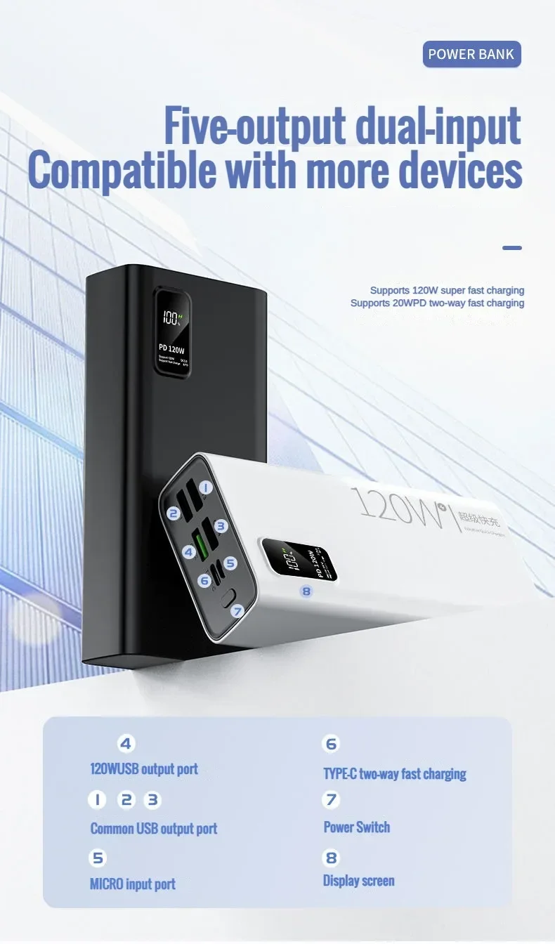 Xiaomi 50000mah Power Bank New 120w Super Fast Charging 100% Capacity Portable Battery Charger For Iphone Xiaomi Huawei Samsung