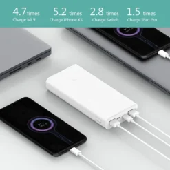 Specifications: Capacity: 20000mAh (74W) Output: 12000mAh (5.1V, 3.6A) Input: 2-Port USB-C and Micro-USB, Max 18W input or output Charging: 2-Way fast charging, 18W USB-C output Compatibility: iPhone charging 50% faster than standard 5W USB Charger Multi-device charging: 3 devices simultaneously with 2 USB-A ports and 1 USB-C port Features: **Efficient Power on the Go** The Original Xiaomi Power Bank 3 is a portable powerhouse designed to keep your devices charged and ready for action. With a substantial 20000mAh capacity, this power bank is capable of delivering a real output of 12000mAh, ensuring that your smartphones, tablets, and other gadgets stay powered for longer. The 2-way fast charging feature allows for efficient power transfer, with a USB-C port supporting both input and output, capable of reaching a maximum of 18W. This means you can charge your devices quickly and efficiently, whether you're at home or on the move. **Versatile Charging Solutions** The Xiaomi Powerbank is not just about capacity; it's about versatility. With three output ports, including a USB-C port, you can charge multiple devices simultaneously. The power bank's design allows for a single output of up to 18W, making it an ideal companion for those who need to charge multiple devices at once. Whether you're at a coffee shop, in a meeting, or traveling, this power bank ensures that you can keep your devices powered without the hassle of searching for outlets. **Designed for the Modern User** The sleek design of the Mi powerbank is not just about aesthetics; it's about practicality. The power bank's compact size and lightweight build make it easy to carry in your bag or pocket, ensuring that you have power on hand whenever you need it. The power bank's compatibility with a wide range of devices, including the iPhone, means that you can charge your devices quickly and efficiently, no matter where you are. Whether you're a busy professional, a student, or a traveler, the Xiaomi Power Bank 3 is the perfect accessory to keep your devices powered and ready for action.