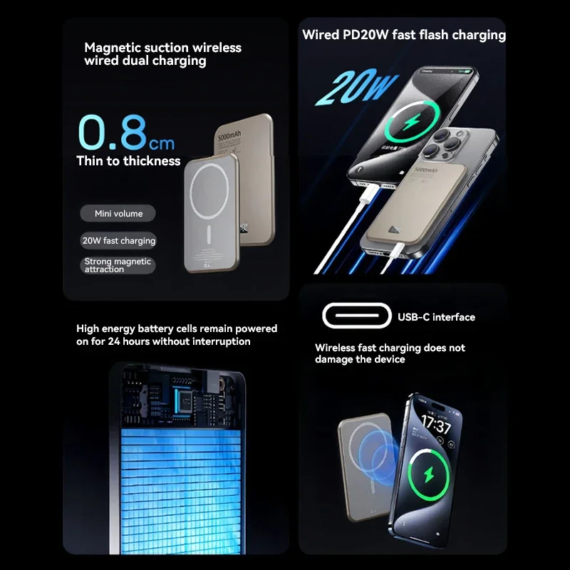 50000mAh Power Bank PD20W Fast Charging Portable External Battery for Magsafe For iPhone