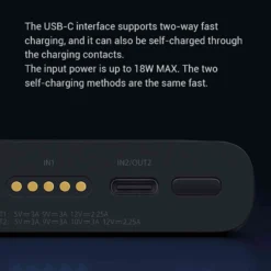 USB-C input (USB-A and wireless output at the same time): 5V-3A